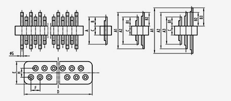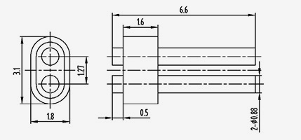| 2-JD154330-0.5(5.8-2)-5 | Al = 5,8 A2 = 5,1 | B1 = 2 B2 = 1,3 | 1.5 | 4.3 | 3 | 1.27 | 0.5 | 1.5 | 5 | 2 | Juotos Yläpuolen litistys |