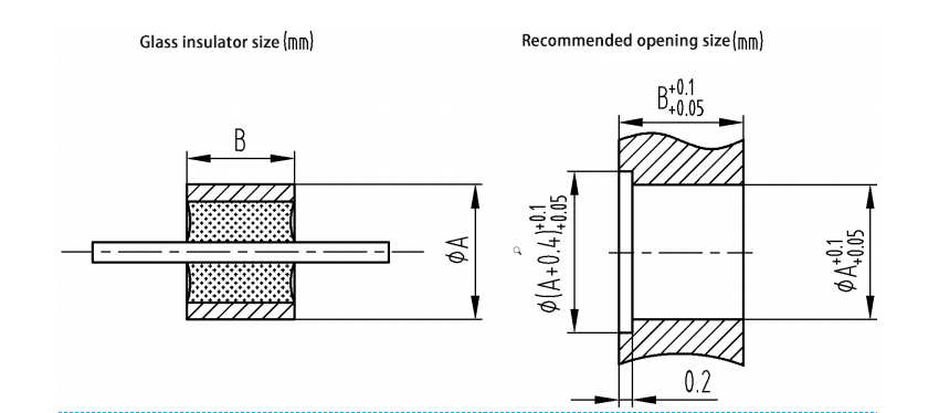 Suositellut asennusaukon mitat yksiytimille lasieristeille on esitetty alla: