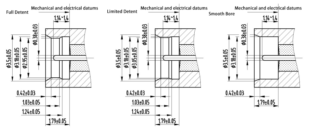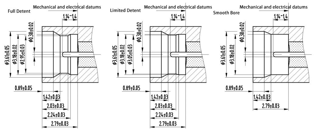 SMP-J-tyyppisillä ilmatiivistetyillä RF-koaksiaaliliittimillä on kolme liitäntämuotoa: täydellinen poisto, puoliväli ja valoreikä. Mallia nimettäessä F tarkoittaa täyttä pakoon, L tarkoittaa puoliväliä ja S tarkoittaa valoa. Liitäntämitat on jaettu vakiomittoihin ja lyhyisiin liitännän mittoihin, jotka molemmat ovat yhteensopivia SMP-K-tyyppisten liittimien kanssa.